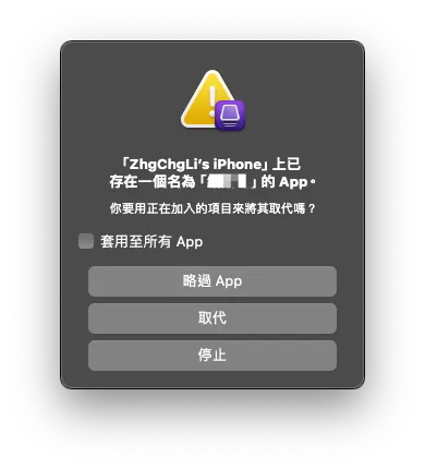 放著等他下載完成後,會跳出詢問是否要取代現有已安裝 App 視窗。