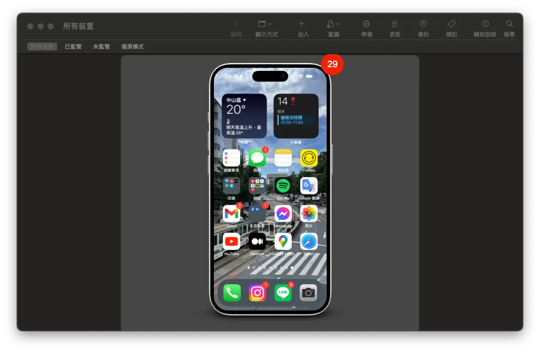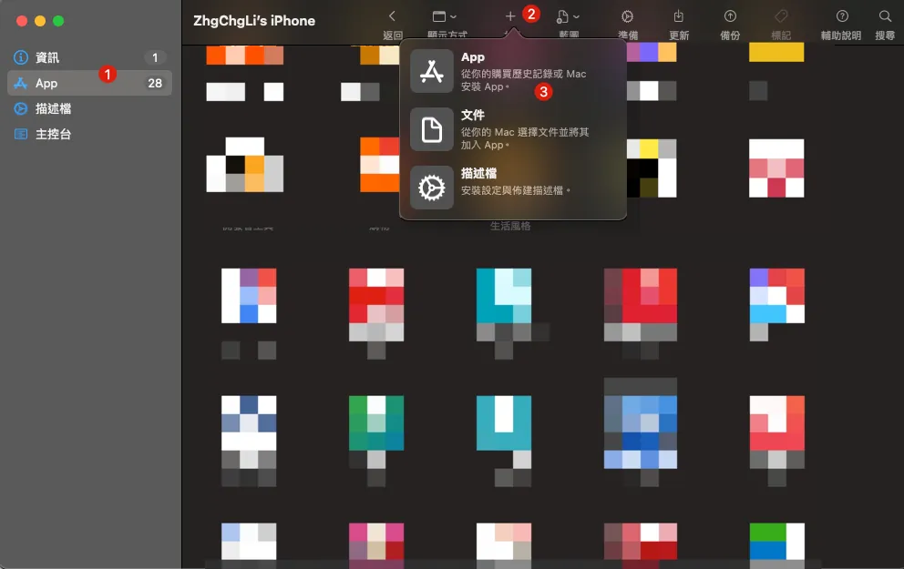 一樣是將欲還原 App 的手機接上 Mac 並打開 Apple Configurator 2,進入 App 加入介面。