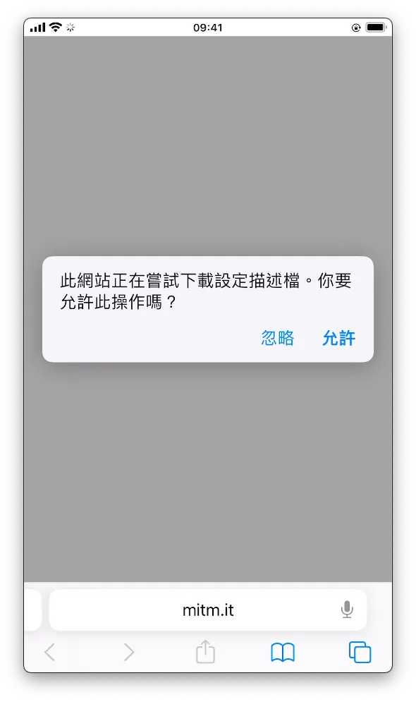 針對 HTTPS 加密連線我們需要使用根憑證抽換進行中間人攻擊,因此第一次使用須先完成手機端根憑證下載與啟用。