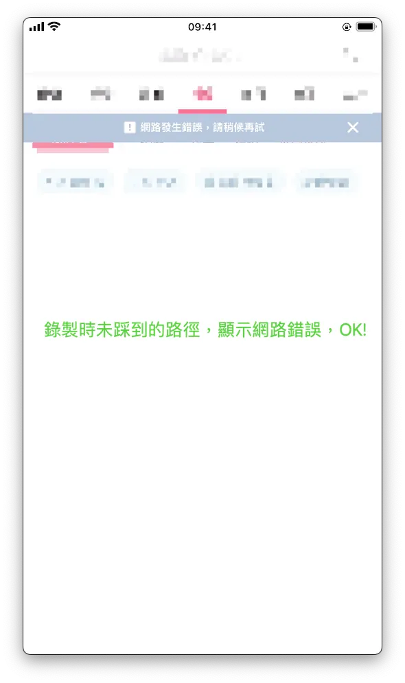 - 錄製擷取時沒經過過的路徑頁面,回放時顯示網路錯誤:OK!