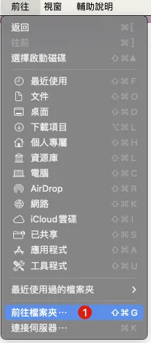 左上角工具列選擇「前往」-> 「前往檔案夾」