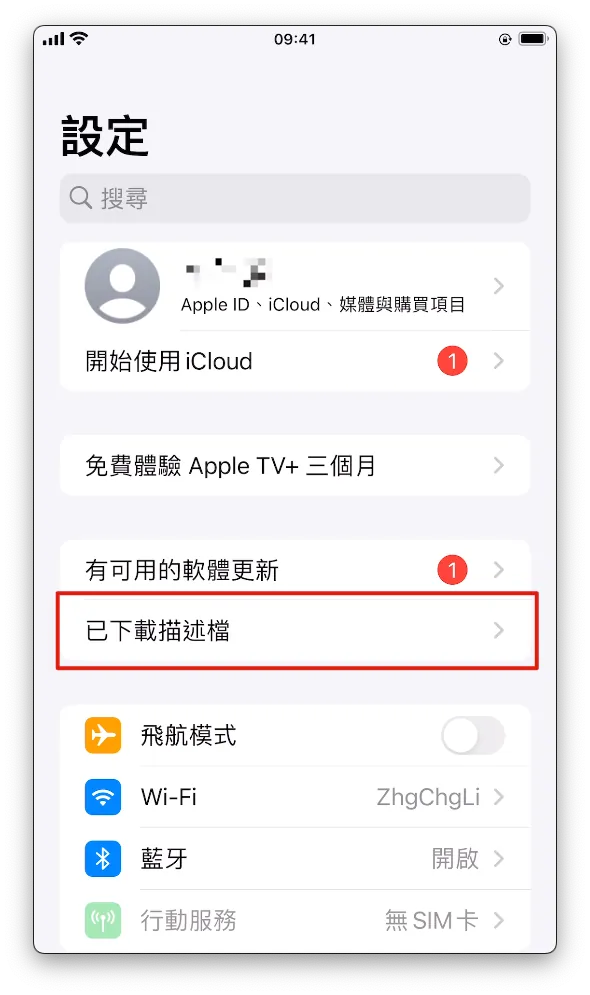 下載完成後進入到手機的設定,會出現「已下載描述檔」點擊進入。
