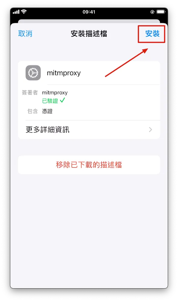 - 點擊進入,右上角「安裝」,輸入手機密碼完成安裝。