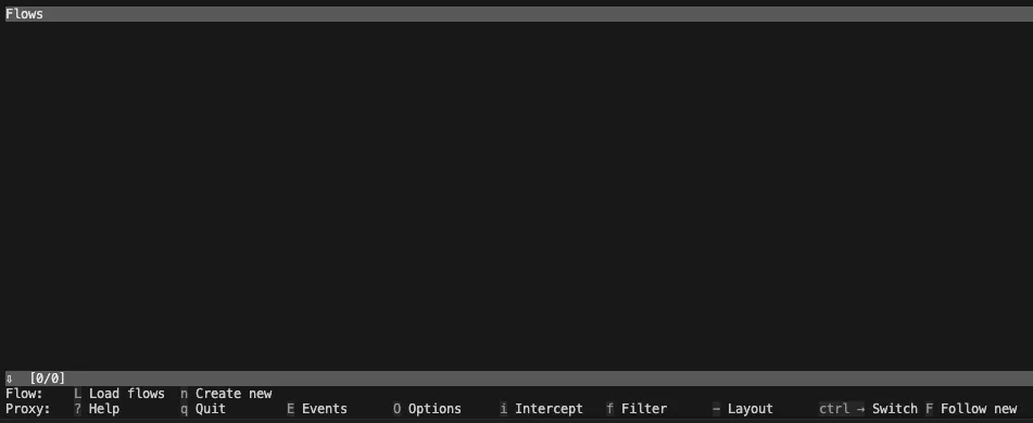 看到這畫面代表 mitmproxy 服務已啟動,目前沒有流量進來所以是空的,掛在這個畫面不要關閉 Terminal。