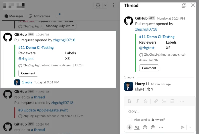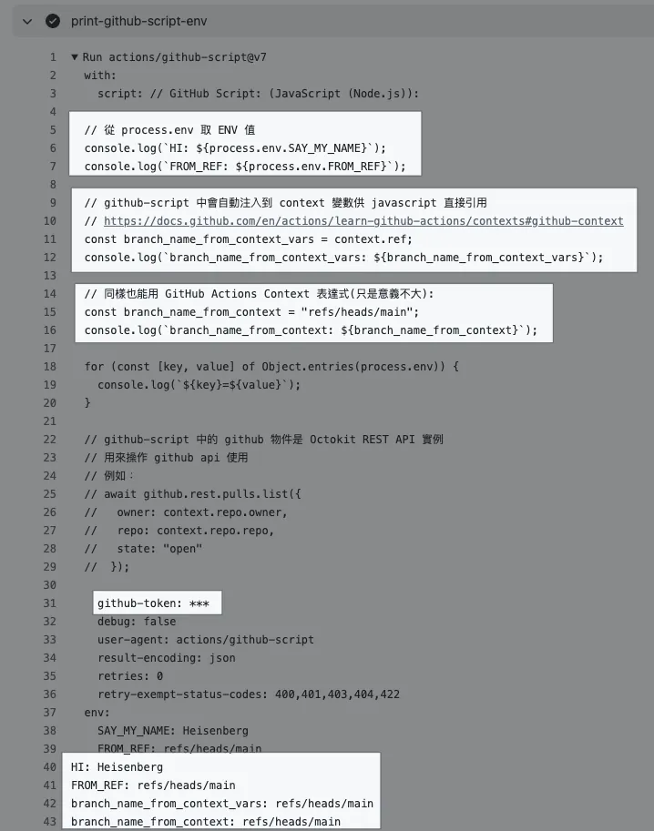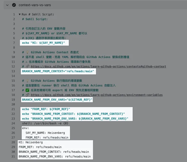 - Step 可以直接撰寫 shell script 程式 可以引用 gh cli 、當前環境變數(例如取得 PR 編號),直接做想做的事