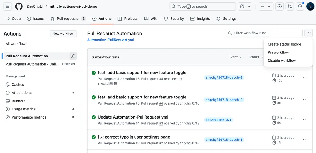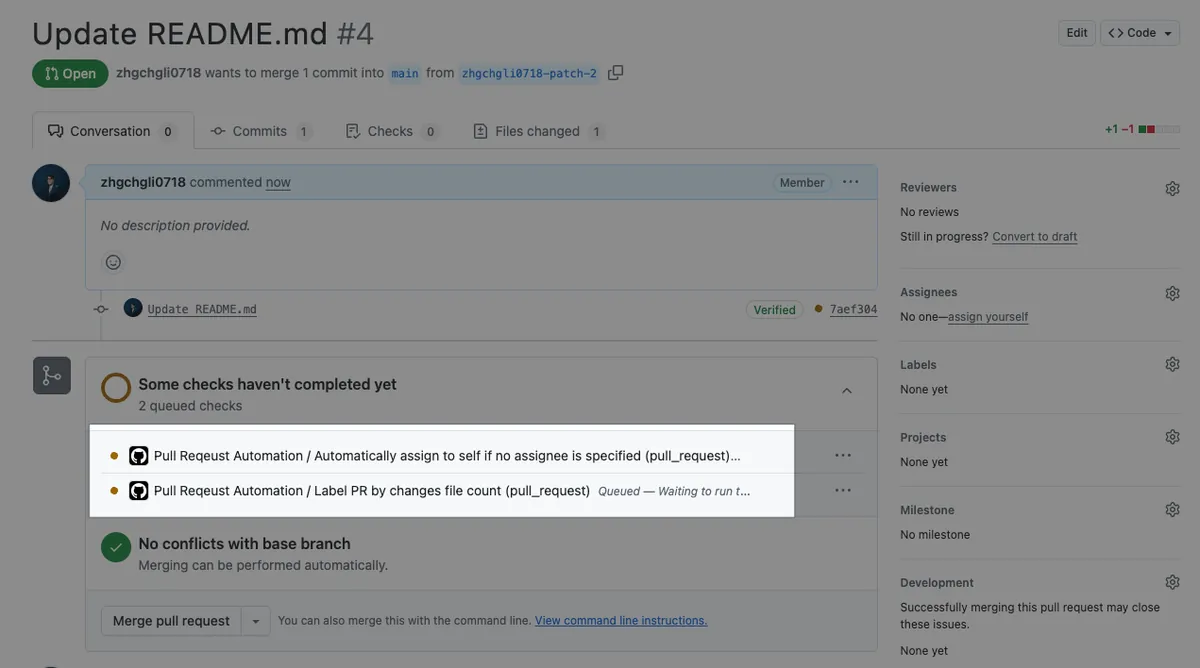 Commit 檔案到 Repo 主分支之後,重新開 PR 觸發驗證一下 Actions。
