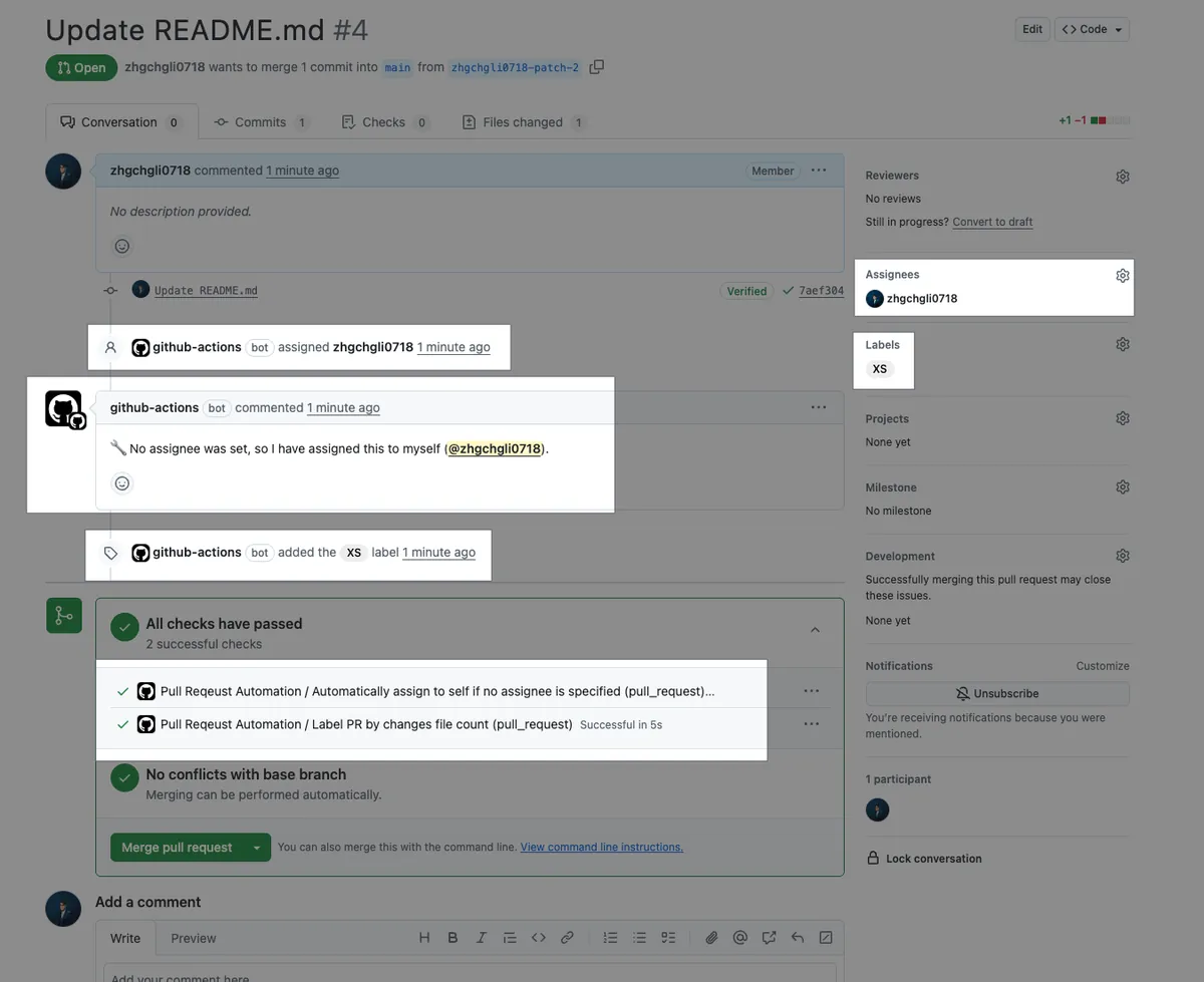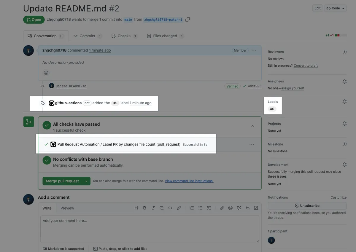 Commit 檔案到 Repo 主分支之後,重新開 PR 觸發驗證一下 Actions。