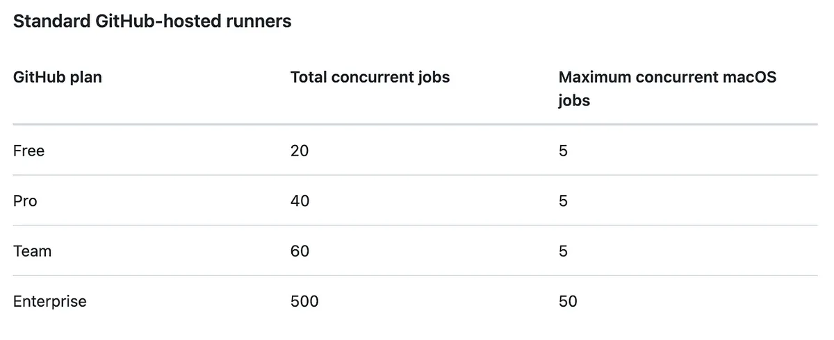 - 只關心 Job 不關心是哪個 Action(Workflow) 因此會出現 Action A 的 Job-1 執行完,下一個換 Action B 的 Job-1,而不是 Action A 的 Jobs 都執行完才換 Action B。