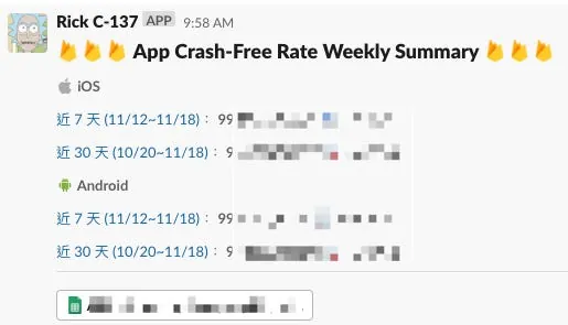 現在開始,紀錄追蹤 App Crash-Free Users Rate 數據完全自動化;不需要人工手動查詢&填入;全部交給機器自動處理!