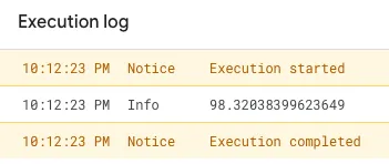 將以上程式碼貼到 Google Apps Script 右方程式碼區塊&上方執行方法選擇「execute」function 後可以點擊 Debug 測試看看是否能正常取得資料: