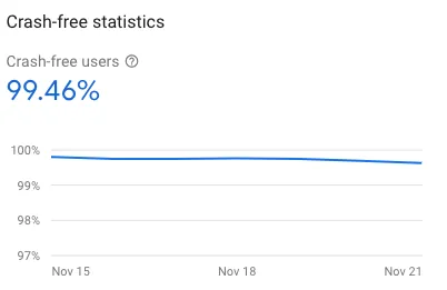 這邊有發現兩邊數字可能會有微微差距(我們有一項數字差了 0.0002),原因不明,不過在可以接受的誤差範圍內;若統一都使用 GA Crash-Free Users Rate 那也不能算是誤差了。