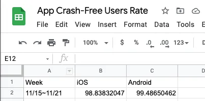 本篇接續自動化一個與 App 閃退相關的重要數據 — Crash-Free Users Rate 不受影響使用者的百分比 ,想必很多 App Team 都會持續追縱、紀錄此數據,以往都是傳統人工手動查詢,本篇目標是將此重複性工作自動化、也能避免人工查詢時可能貼錯數據的狀況;同之前所述,Firebase Crashlytics 沒有提供任何 API 供使用者查詢,所以我們同樣要借助將 Firebase 數據串接到其他 Google 服務,再透過該服務 API 查詢相關數據。