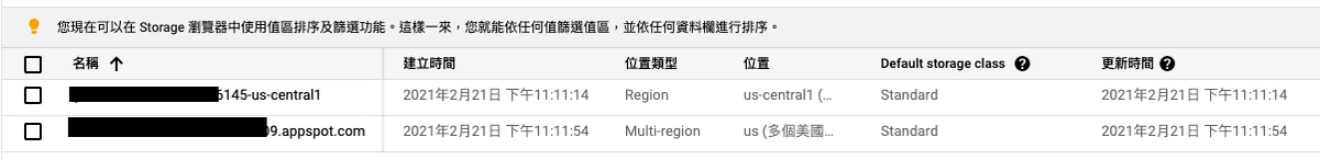 After creating Cloud Functions, two Cloud Storage entities are automatically created: