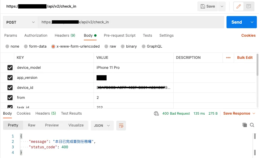 2. Write a Python script to forge APP API requests (simulate check-in actions)