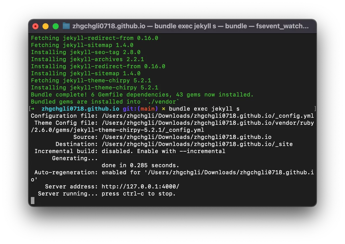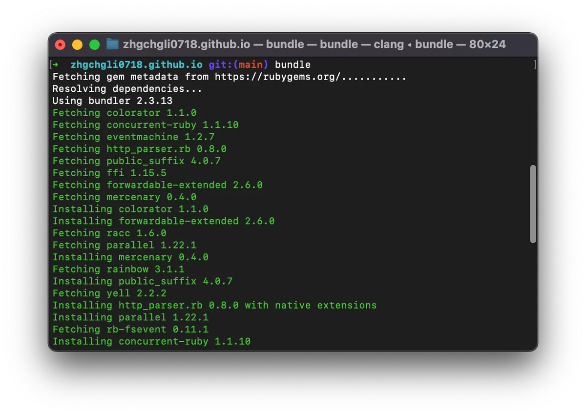 Enter the above commands in Terminal to install Jekyll, Bundler, and ZMediumToMarkdown.