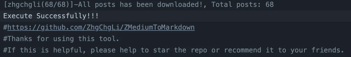 uses: ZhgChgLi/ZMediumToMarkdown@main