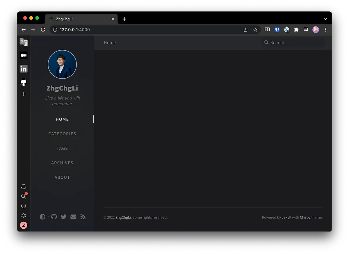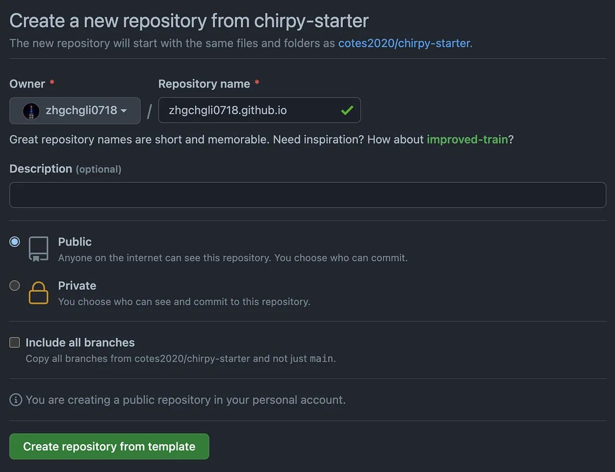 Here, I will use the template Chirpy adopted by my blog as an example. This template offers the simplest one-click installation method and can be used directly.
