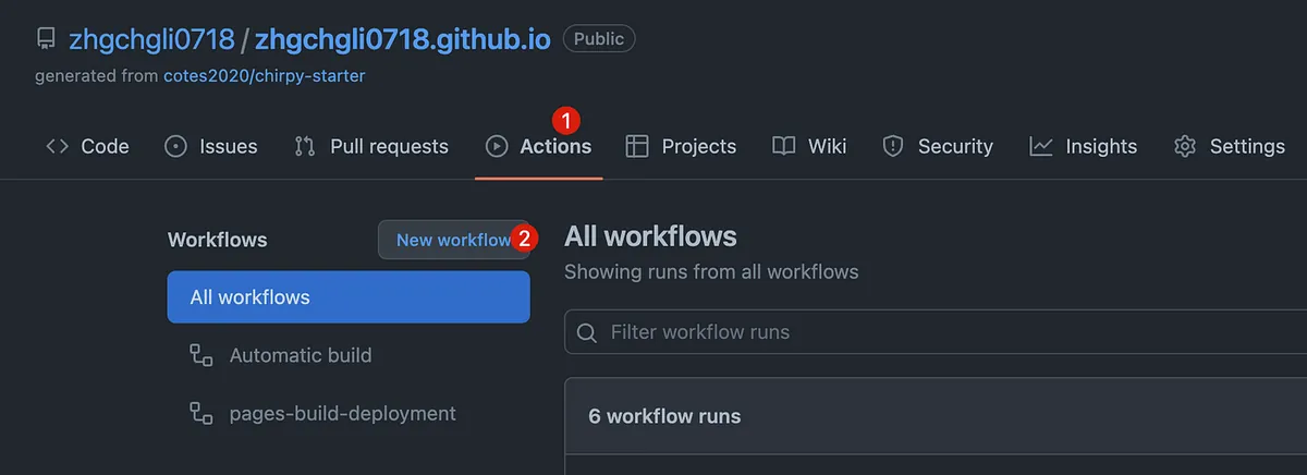 Alternatively, you can find templates on Github that can be directly forked (e.g. al-folio) and used immediately. If none suit your needs and you have to manually install a template, you will need to figure out how to set up Github Pages deployment yourself. I tried researching this but was unsuccessful; I will update this article with my findings in the future.