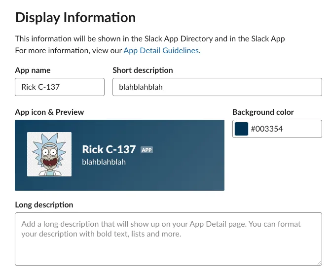 https://us-central1-xxx-xxx.cloudfunctions.net/SlackBot-Rick-C-137?token=nF4JwxfG9abqPZCJnBerwwhtodC28BuCSubscribe to bot events: