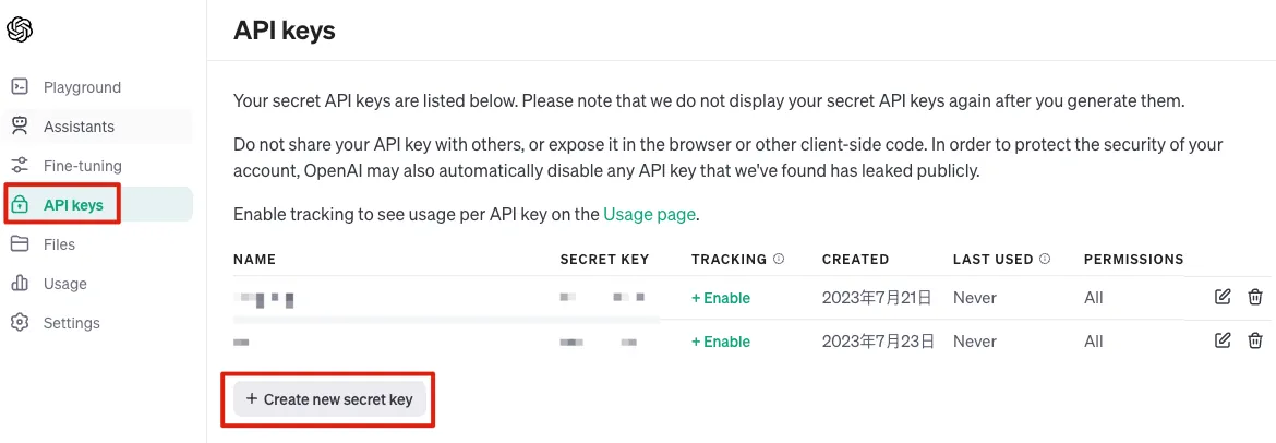 OpenAI API Key can be generated from this page. The Key is not tied to a specific Model version; you need to specify the Model version when using it, which determines the corresponding token cost.