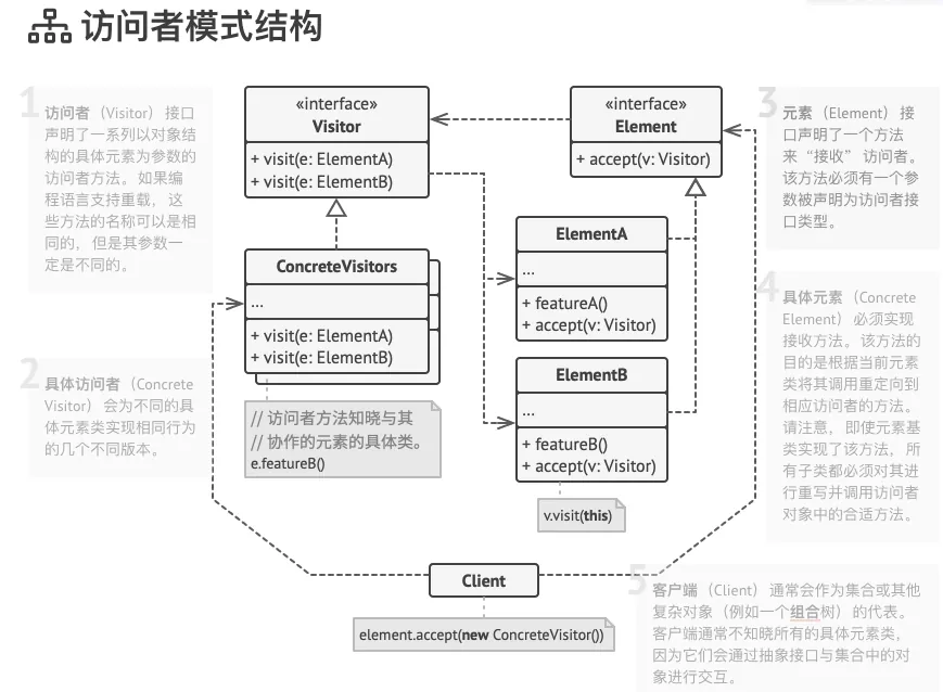 The detailed content will not be repeated here. Please refer directly to refactoringguru’s explanation of Visitor.
