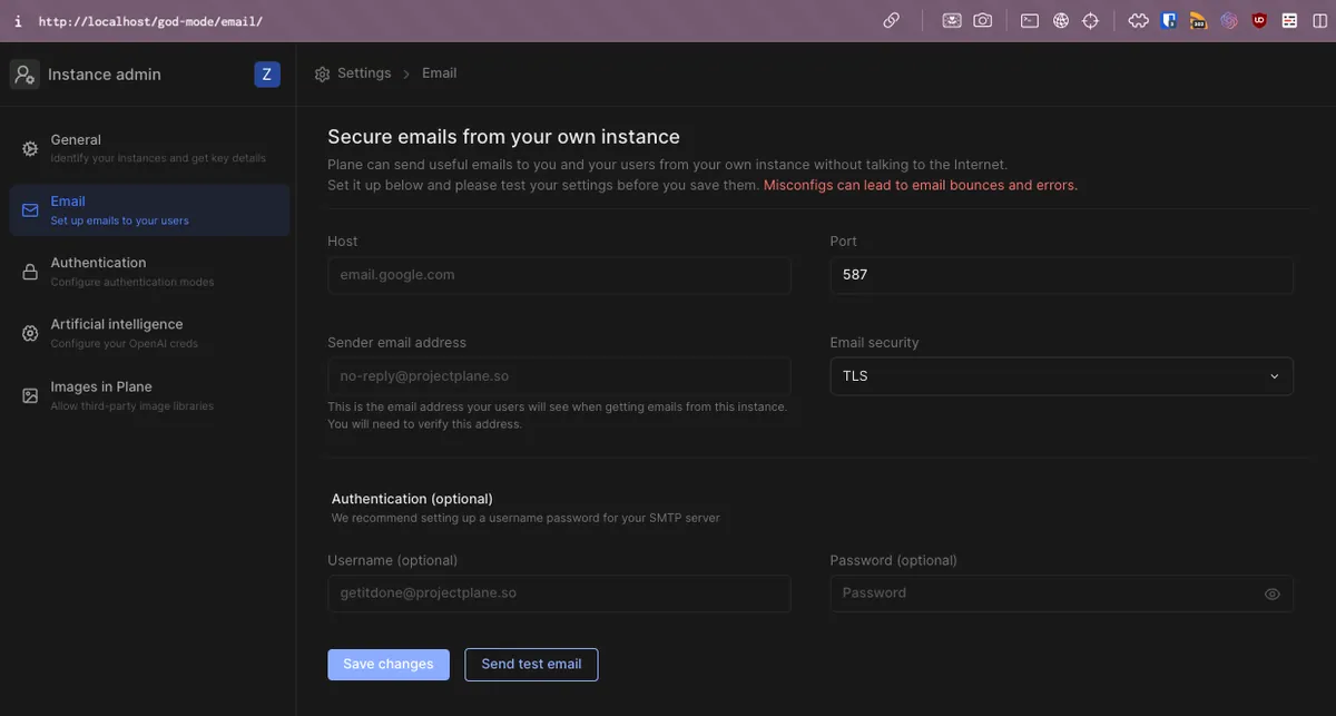 因 Plane 專案正在開發中並且是開源專案,尚不確定有無嚴重系統漏洞,最嚴重可能會變成入侵入口;因此不建議將 Plane.so Self-Hosted 建立在公開網路上,可多加一層安全驗證(Tunnel or 憑證 or VPN)通過才能連入;架設在內網也最好隔離開來。
