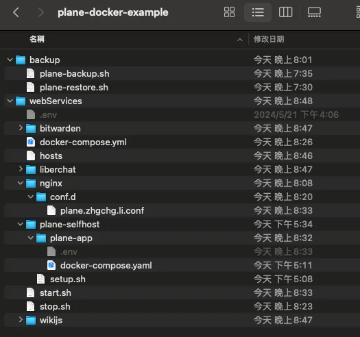 要達成以上效果需要先把 ./plane-selfhost 目錄移動到一個統一目錄下,這邊取名 webServices 。