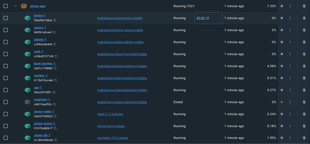 詳細使用操作與開發流程結合介紹,請參考上篇文章「 Plane.so 免費開源且支援 Self-Hosted 的類 Asana/Jira 專案管理工具 」本篇僅記錄 Plane.so 使用 Docker 自架的過程。