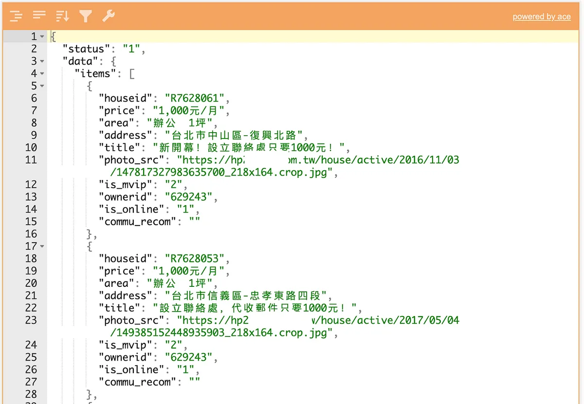 我们想知道物件列表的API是如何请求和回传什么内容!