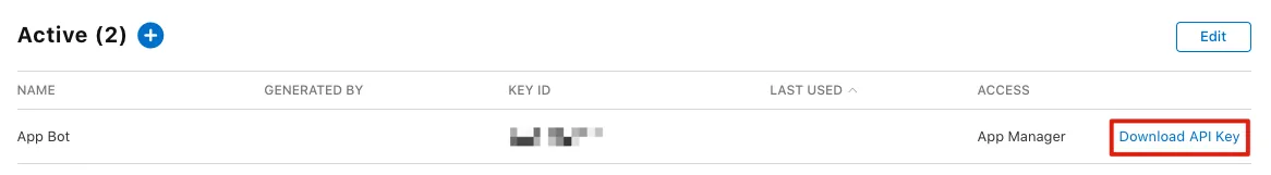 点击右方「Download API Key」下载保存你的「AuthKey_XXX.p8」Key。