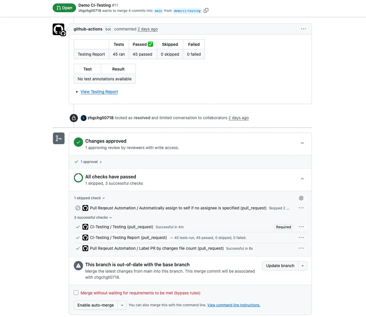 CI 所有人的调整都需要经过 自动化测试验证通过后才能进入主分支、增加 Nightly Build 定时自动化测试环节提升稳定性。