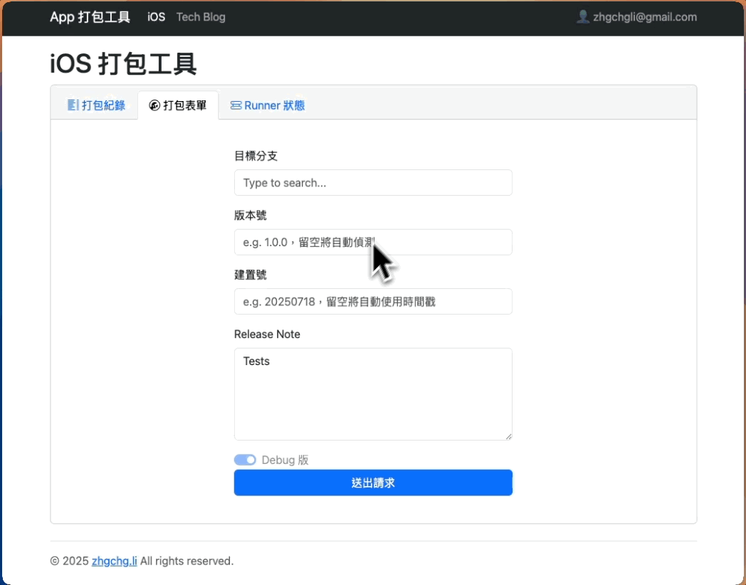 Google Apps Script Web App : 因打包不一定是工程师负责,需要有一个平台给跨职能伙伴可以使用; GAS Web App 能快速打造一个 Web 工具分享网址给其他人操作使用。