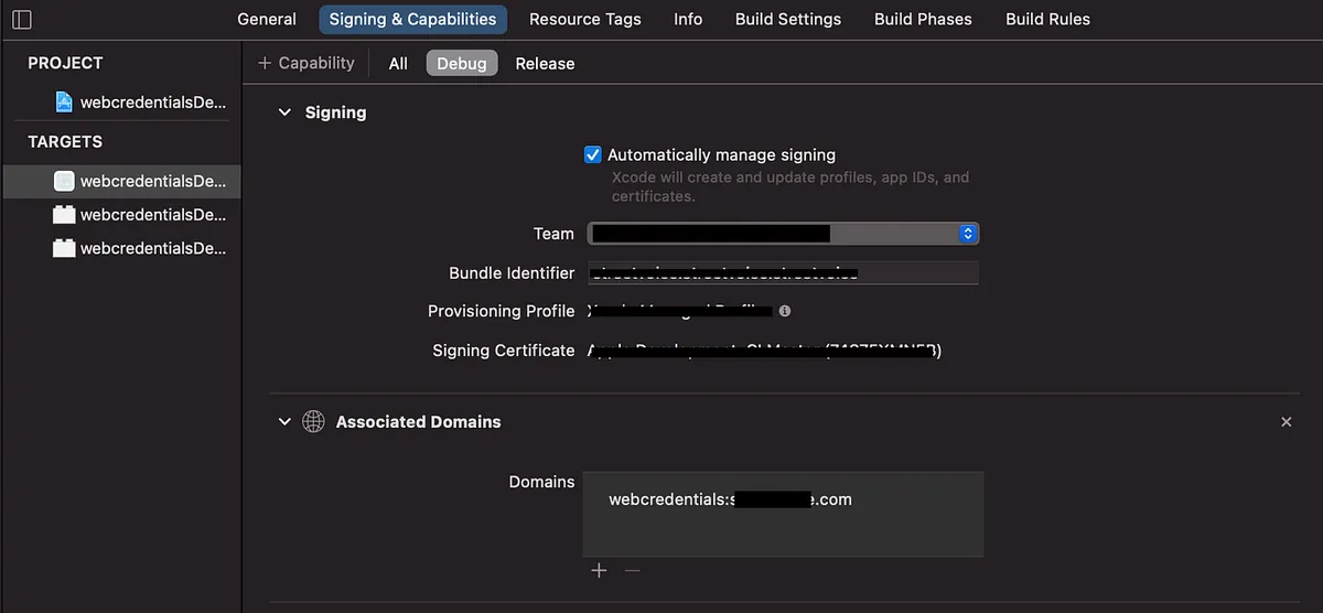 ⚠️ 设定部分一样要设好 Associated Domains,同前述 Password AutoFill 设定。