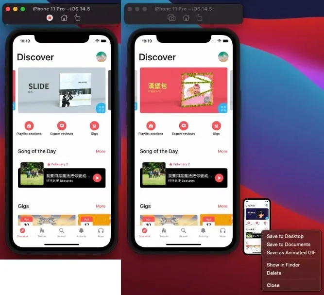 还有 XCode ≥ 12.5 模拟器新增录影,并支援储存成 GIF 功能太好用啦!