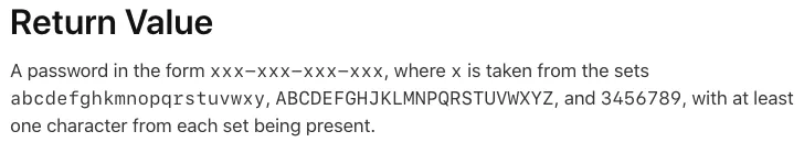 产生器产生出来的 Password 由英文大小写及数字并使用「-」组成 (ex: Jpn-4t2-gaF-dYk)。