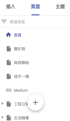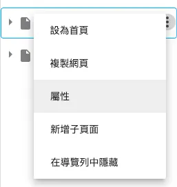 可新增頁面用拖曳的方式拖到現有頁面下就會變成子頁面、或點擊「…」操作。