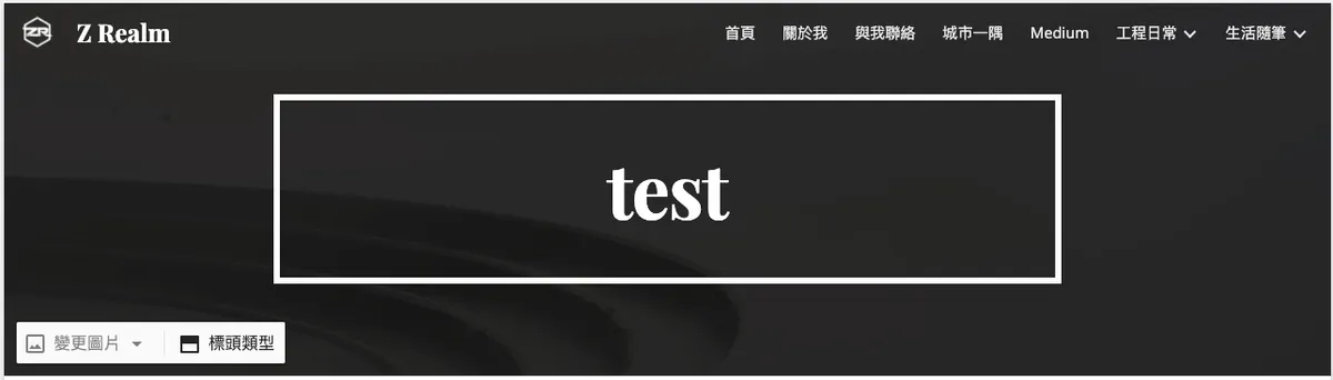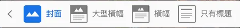 新增頁首後滑鼠移到左下角就能變更圖片、輸入標題文字、變更標頭類型