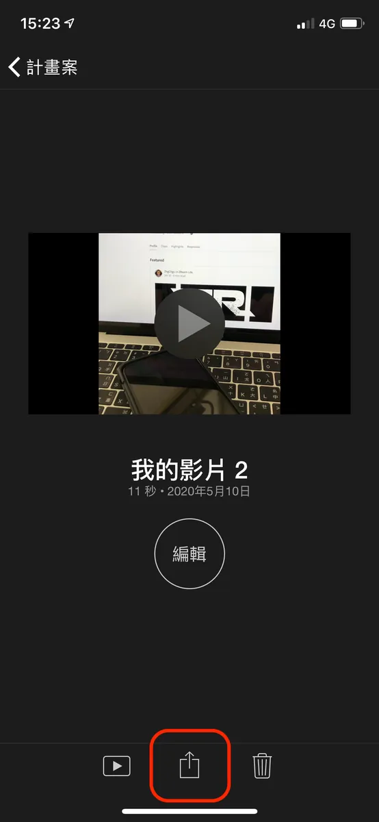 確認兩段影片結束時間一致,點擊左上角「完成」-> 下方「分享」 -> 選擇輸出目標 -> 輸出完成