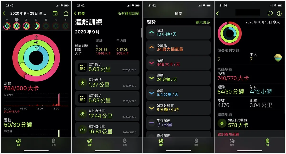 透過有 Apple Watch 才能使用的獨佔的「健身」APP,能記錄你一天的生活,包含每天活動量、走路、心跳、運動紀錄,活動量增減統計、更仔細的健康資訊;社群方面還能與朋友競賽活動量、解鎖勳章,增加運動動力。