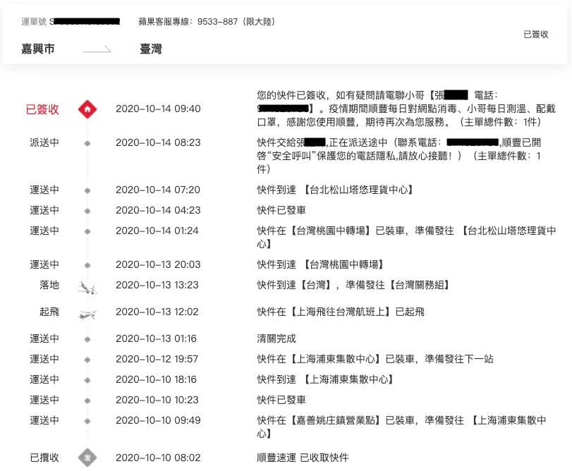 - 系統給的預估收到時間 10/16~10/19(可能剛好遇到大陸國慶長假)