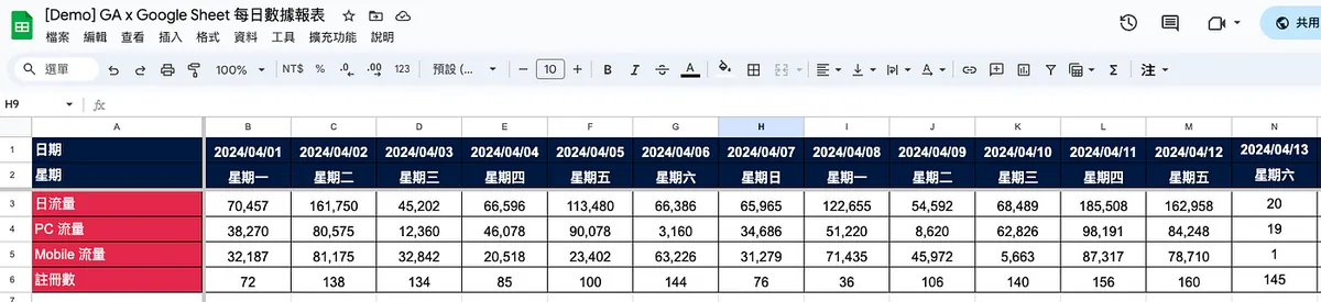 產品團隊需要每日查詢 Google Analytics 數據並填寫到 Google Sheet 數據報表上,共團隊分析趨勢使用;並將每日數據內容發佈到 Dashboard 螢幕上,讓所有成員掌握目前狀況。