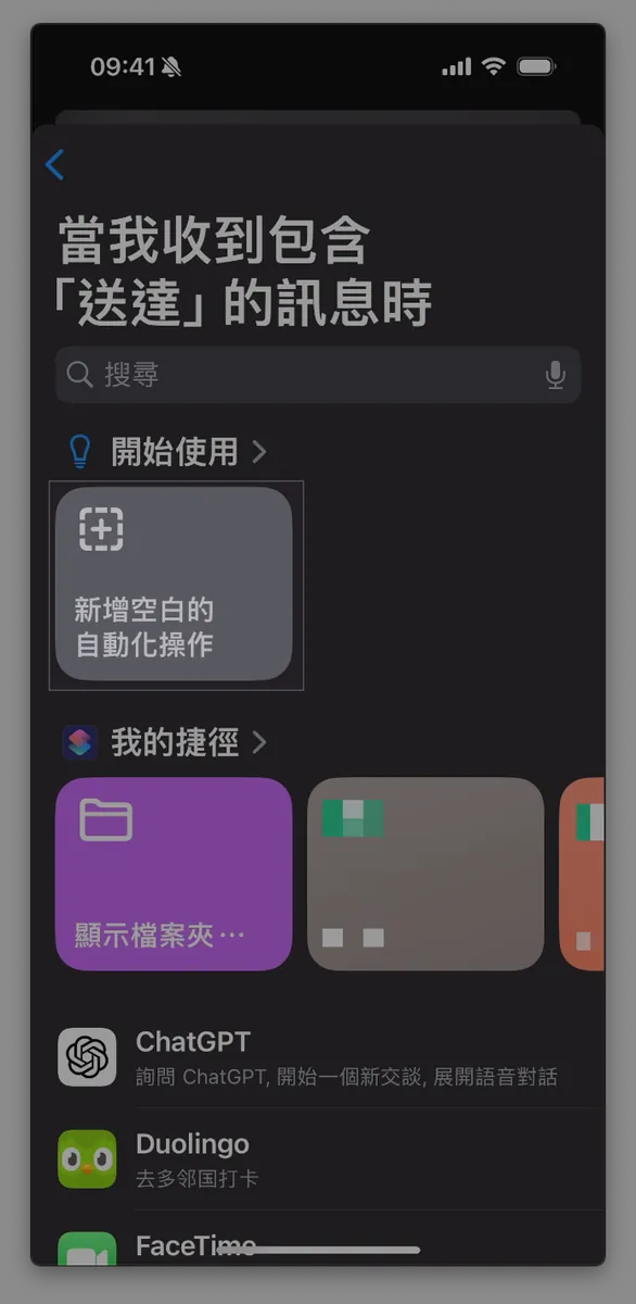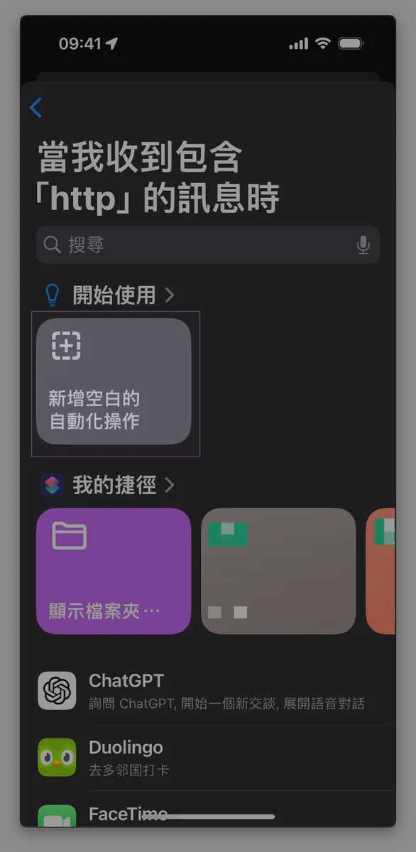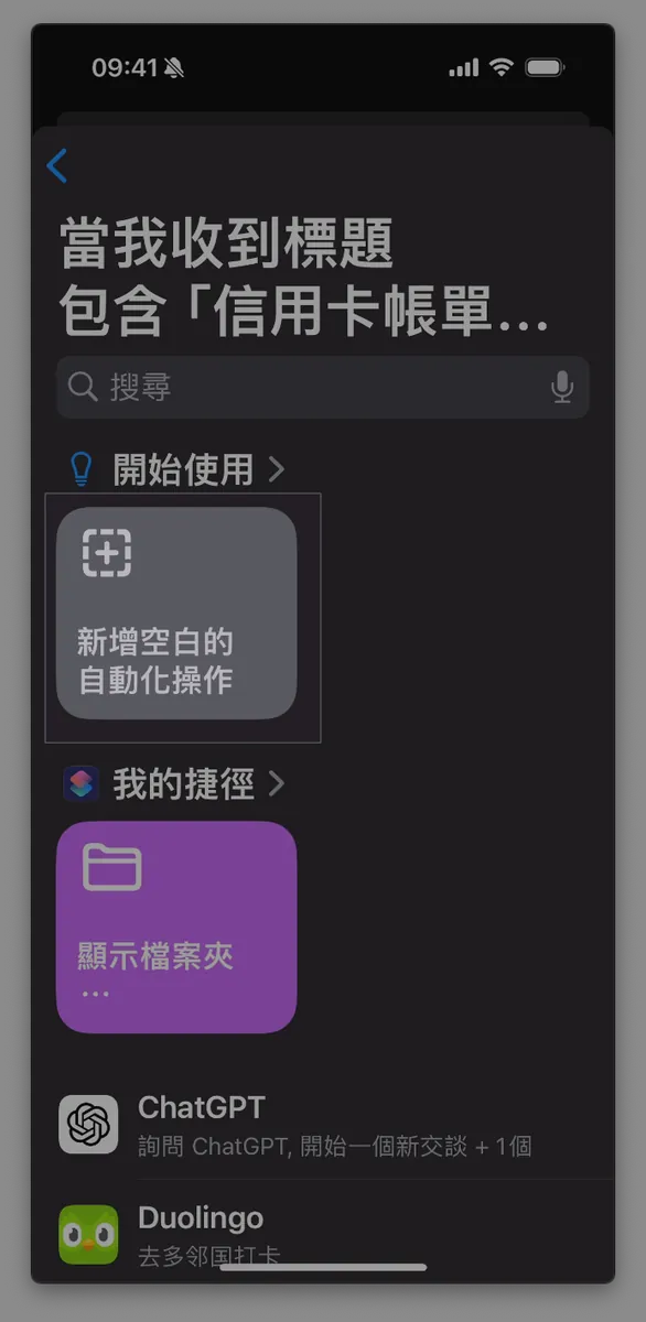 「新增空白的自動化操作」 - 下方搜尋匡搜尋