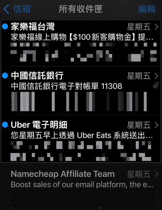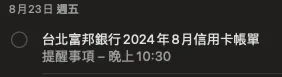 - 現在有新的郵件、Apple 郵件擷取完,裡面有信用卡帳單標題的話就會自動建立囉!