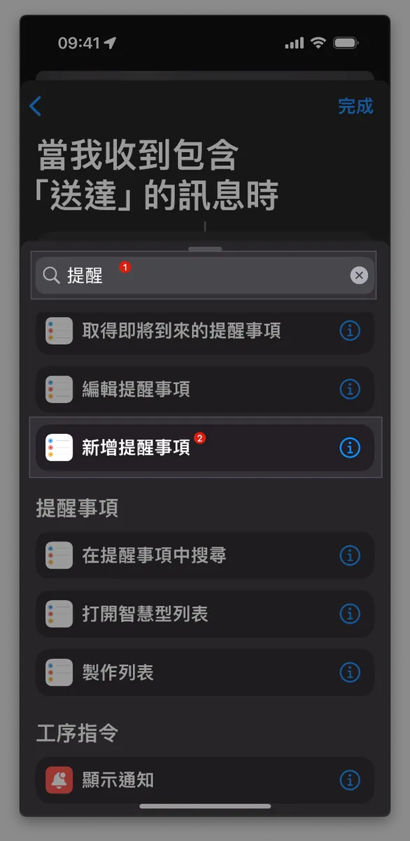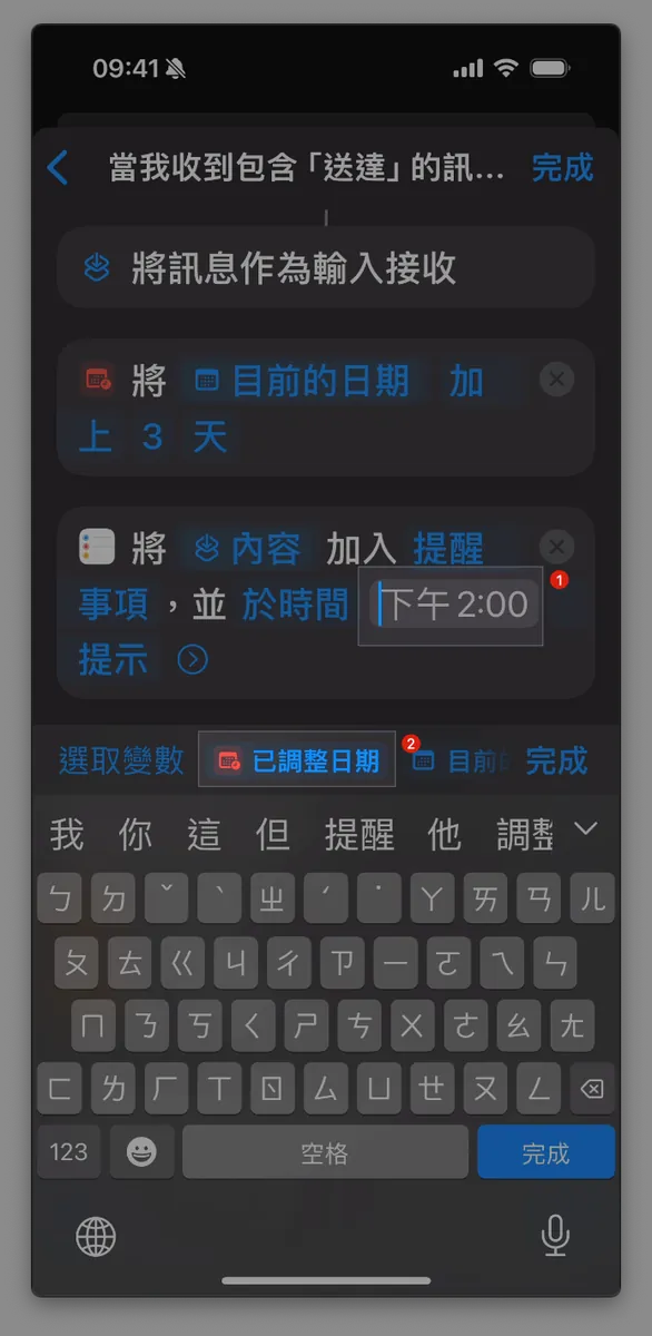 - 當收到簡訊包含「送達」時新增提醒事項 (一般都是「送達」)