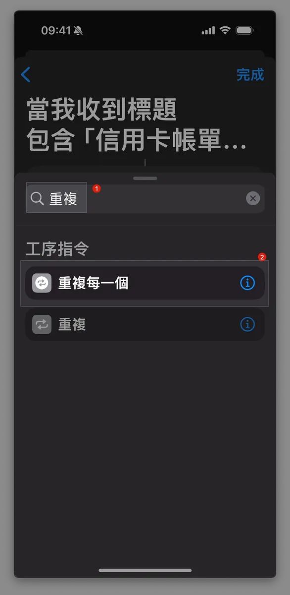 「重複」下滑找到&點擊「重複每一個」 - 新增完會抓錯變數,選擇