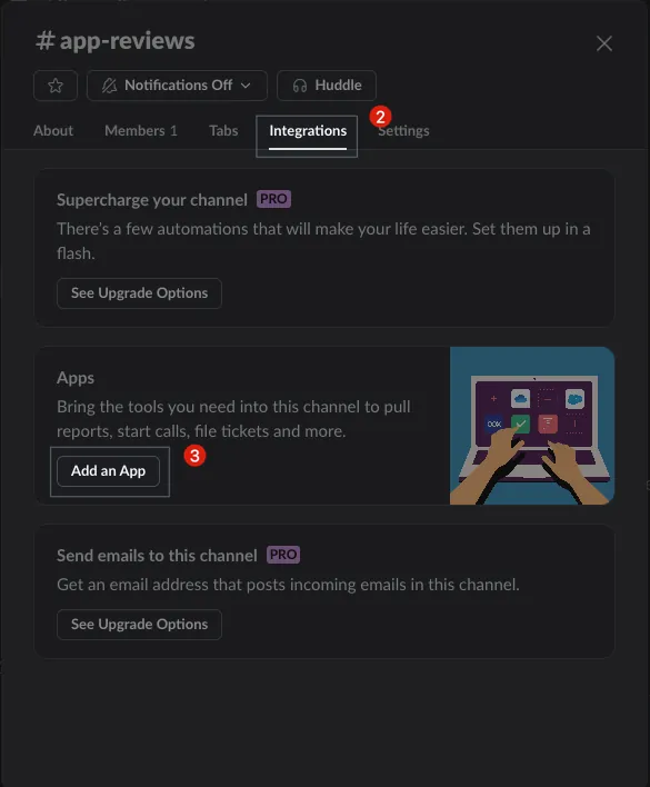 Slack App 加入頻道方式: