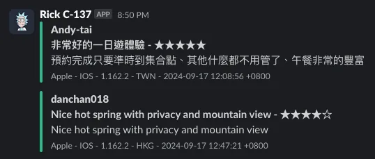 公司使用的內部通訊軟體,會建立一個 Slack App 並透過這個 Slack App 身份轉發 App 商城評價通知到指定的頻道。