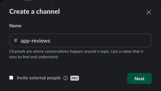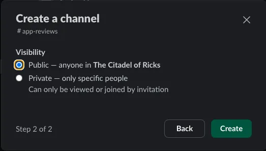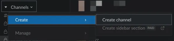 - Sidebar -> Channels -> Create -> Create channel