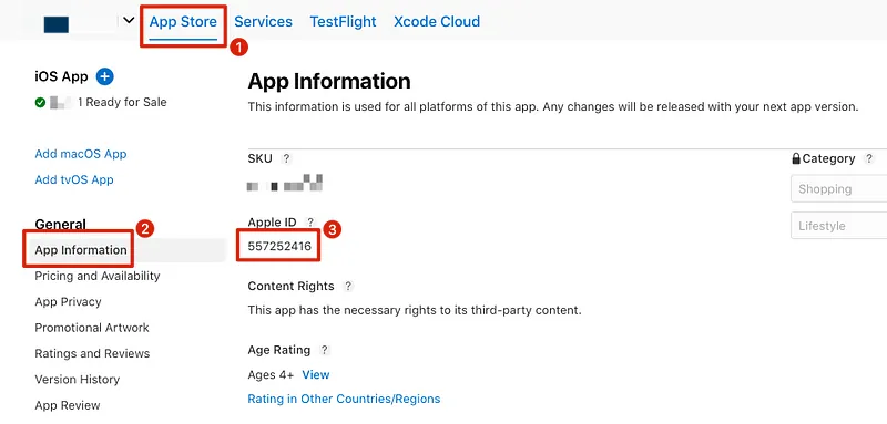 App ID 可以在 App Store Connect -> App Store -> General -> App Information -> App ID 找到。
